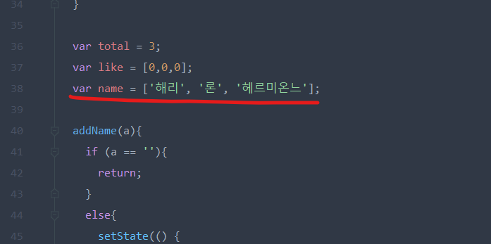맨 마지막 줄은 name 리스트(state)에도 추가로 저장해주는 코드이다.