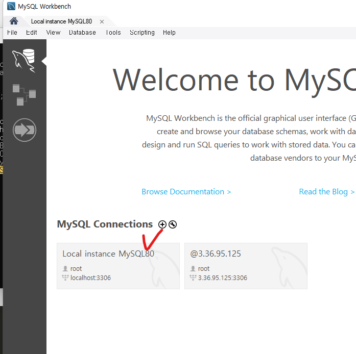 mysql workbench 실행해서 선택해서 접속이 가능한 것 같다.