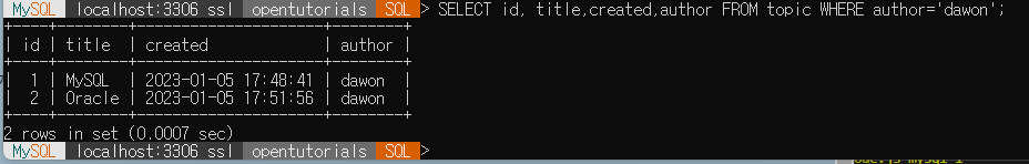 만약 이런식으로 적으면 컬럼을 기준으로 순서를 배열하기도 하고, LIMIT 을 통해서 id가 2까지만(1은 출력되지 않음) 출력될 수도 있다.