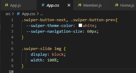 --swiper-theme-color 에 해당하는 것 같아 App.css 에다가 속성을 다시 새로 설정해줬다.