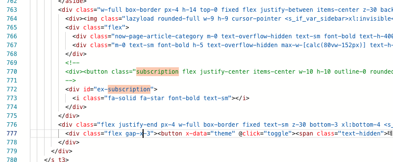 해당 button 태그와 그 부모인 div 태그를 주석처리해주고, 위와 같이 ex-subscription 요소를 추가해줍니다.