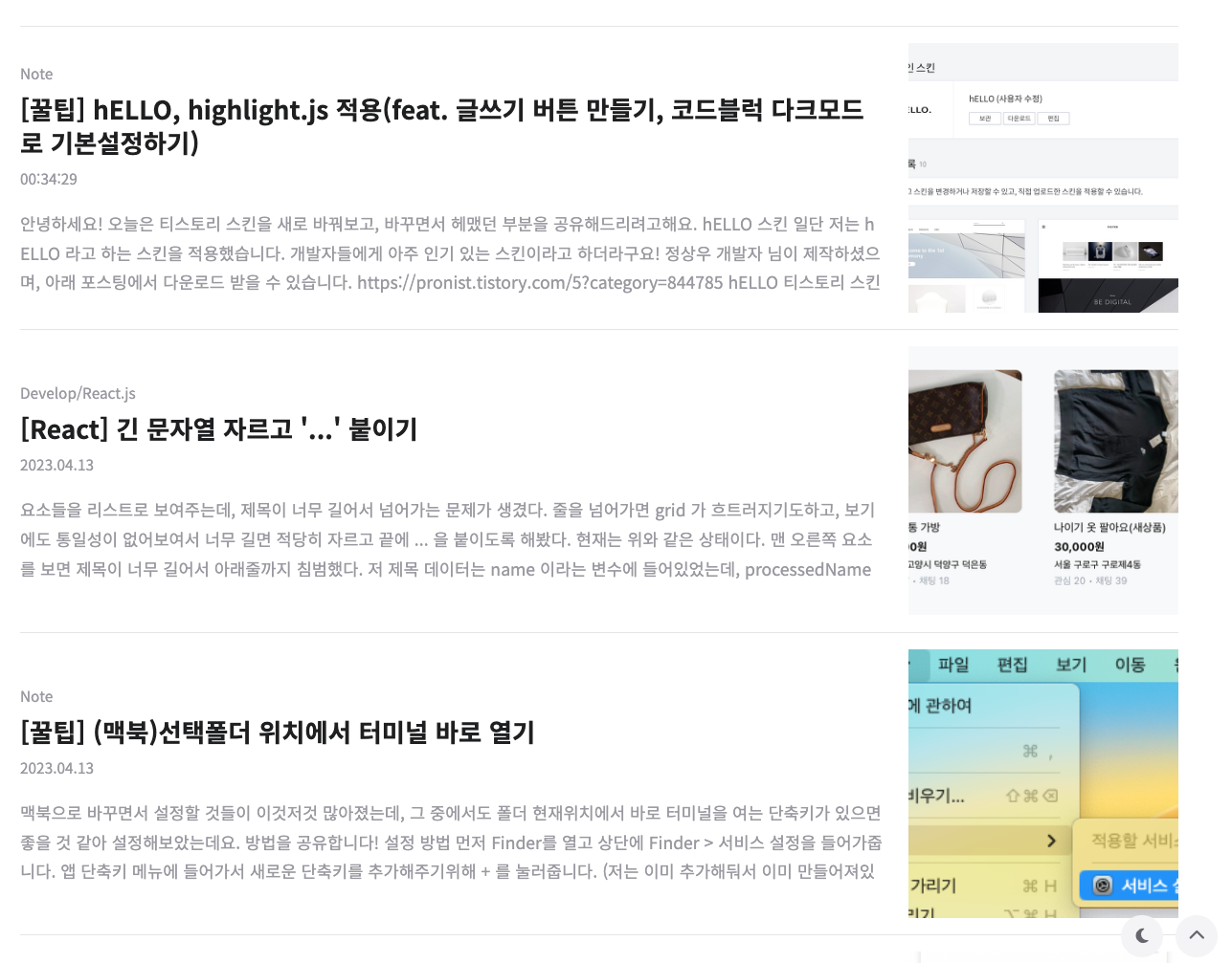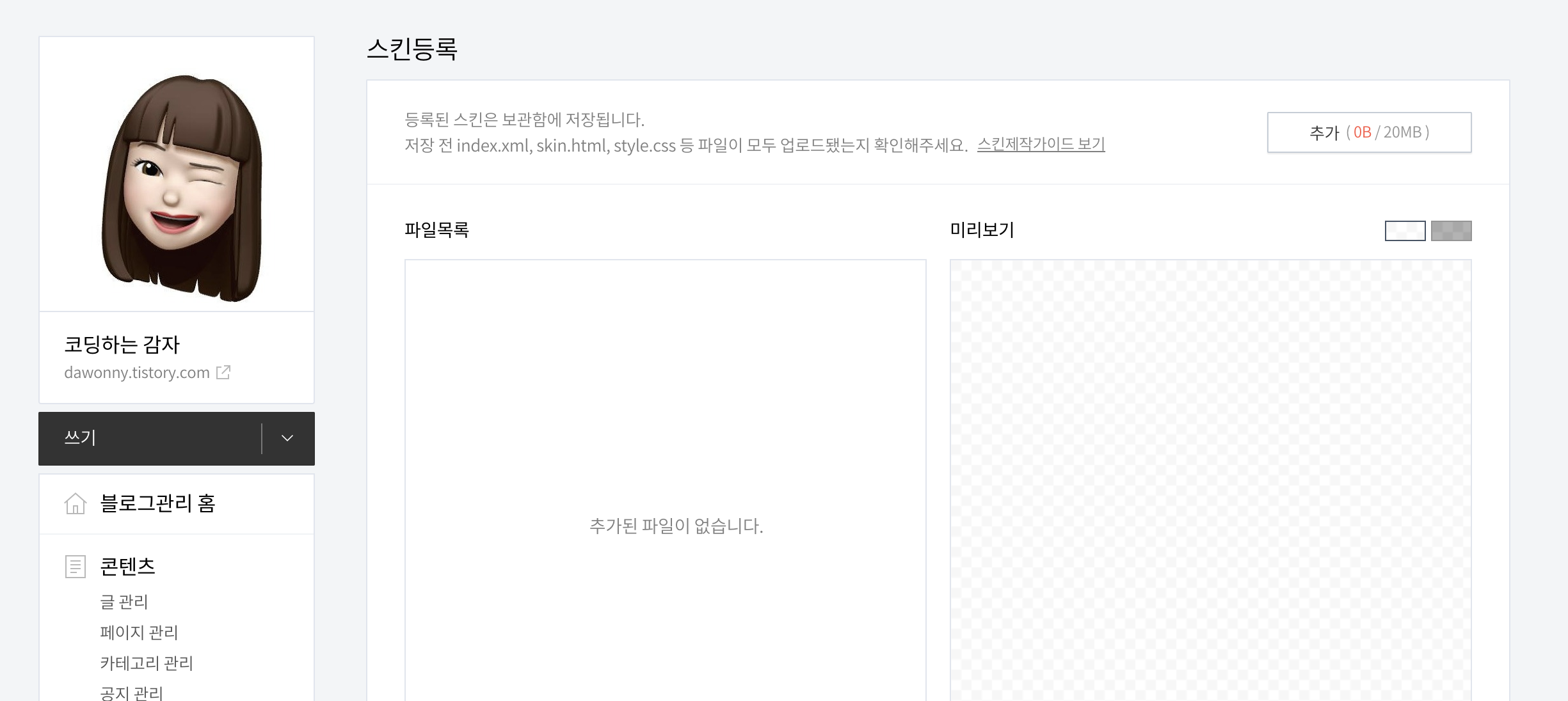 기존에 사용하던 스킨은 글쓰기 버튼 접근성이 좋았었거든요 😓