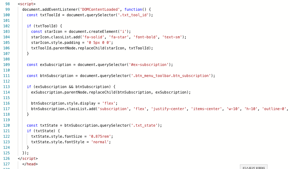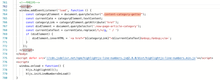 그리고 HTML 에서 command + f 혹은 ctrl + f 를 눌러 아래의 코드를 검색해주세요.