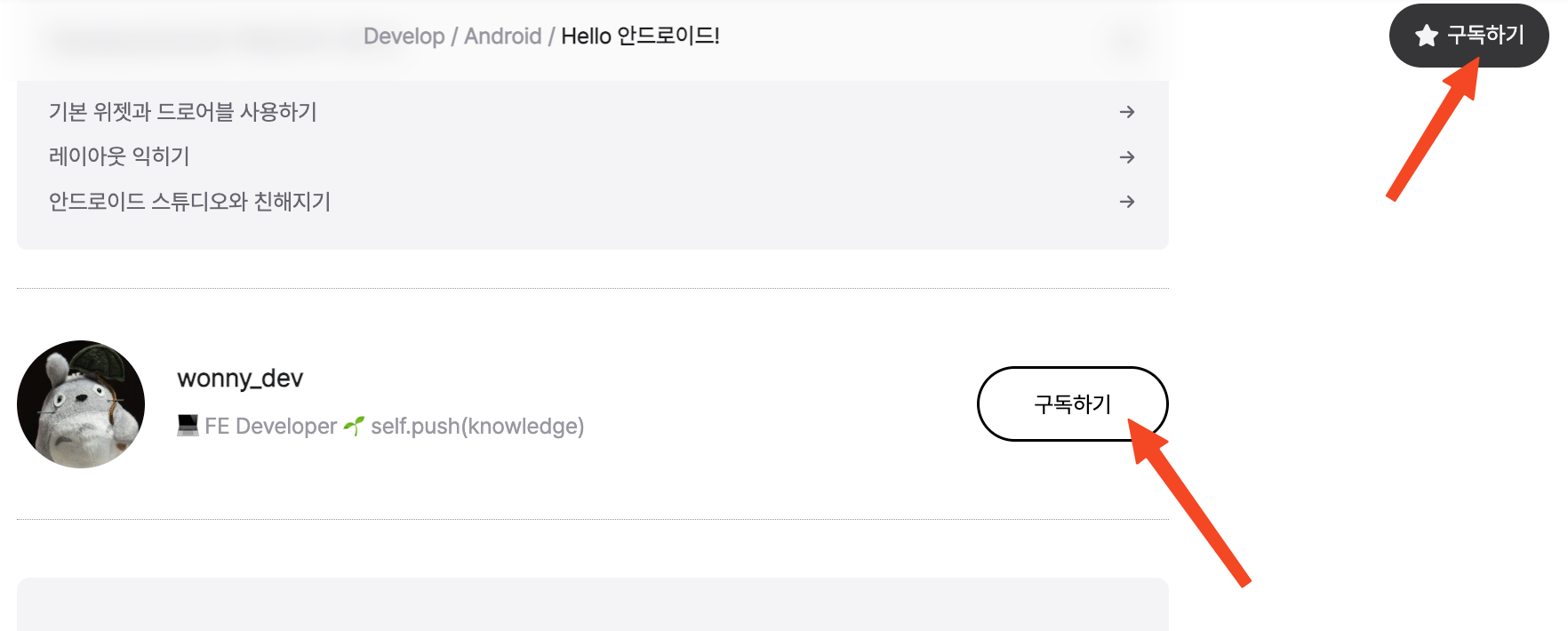 오른쪽 상단에 있는 별모양 버튼은 눌러도 아무런 동작을 안하길래 궁금했는데 원래 구독 버튼이라고 하네요!