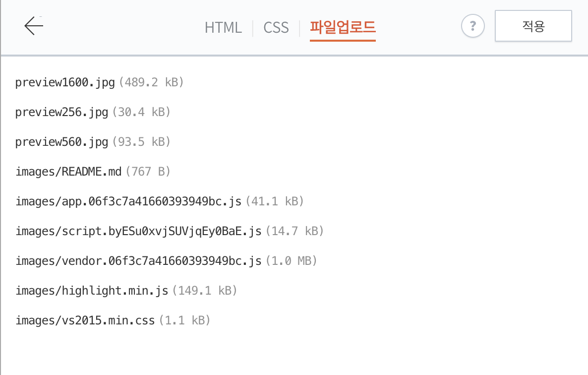 그리고 이번엔 파일 업로드가 아닌 HTML 탭으로 가서 아래와 같이 코드를 4줄 추가해줍니다.