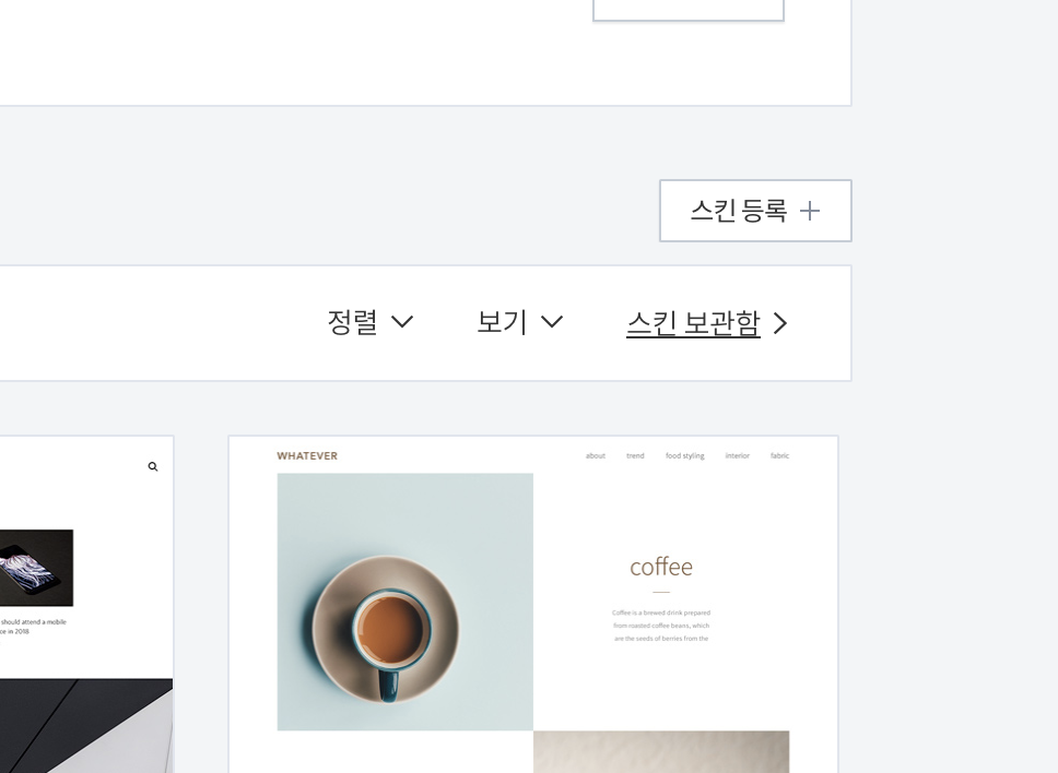 관리자 페이지에 들어가서 스킨 변경 > 스킨 등록 을 눌러줍니다.