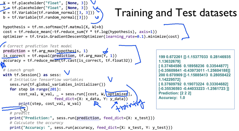 출력되는 prediction 과 accuracy 는 test data를 기반으로 한 것이기 때문에 의미가 있다