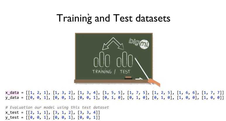이제부터는 data를 training 이랑 test로 datasets를 나누는 거다