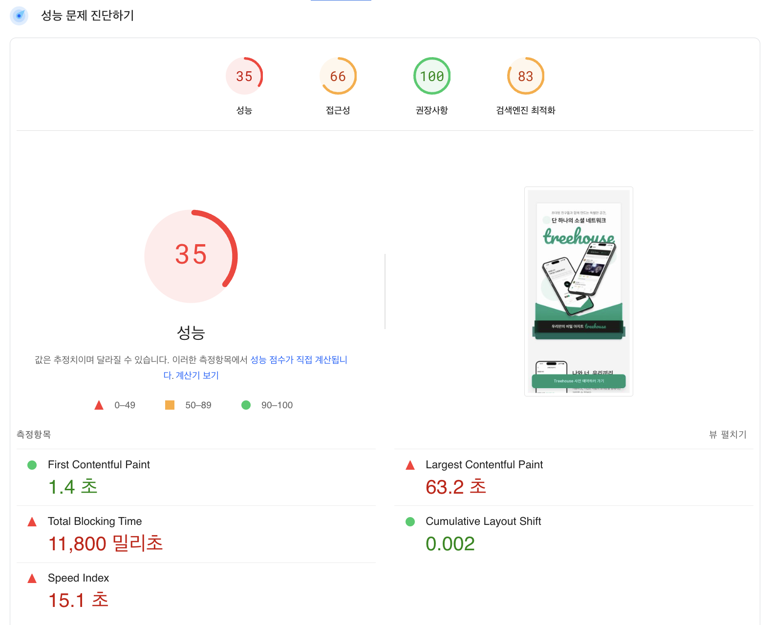 | 성능 점수 | 35 | 66 | 29 | 50 |