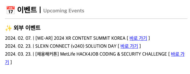 추천 게시물과 같은 경우에는 Slack 채널을 통해, 멤버들 자율에 맡겨서 추천 컨텐츠를 수집하곤 했습니다.