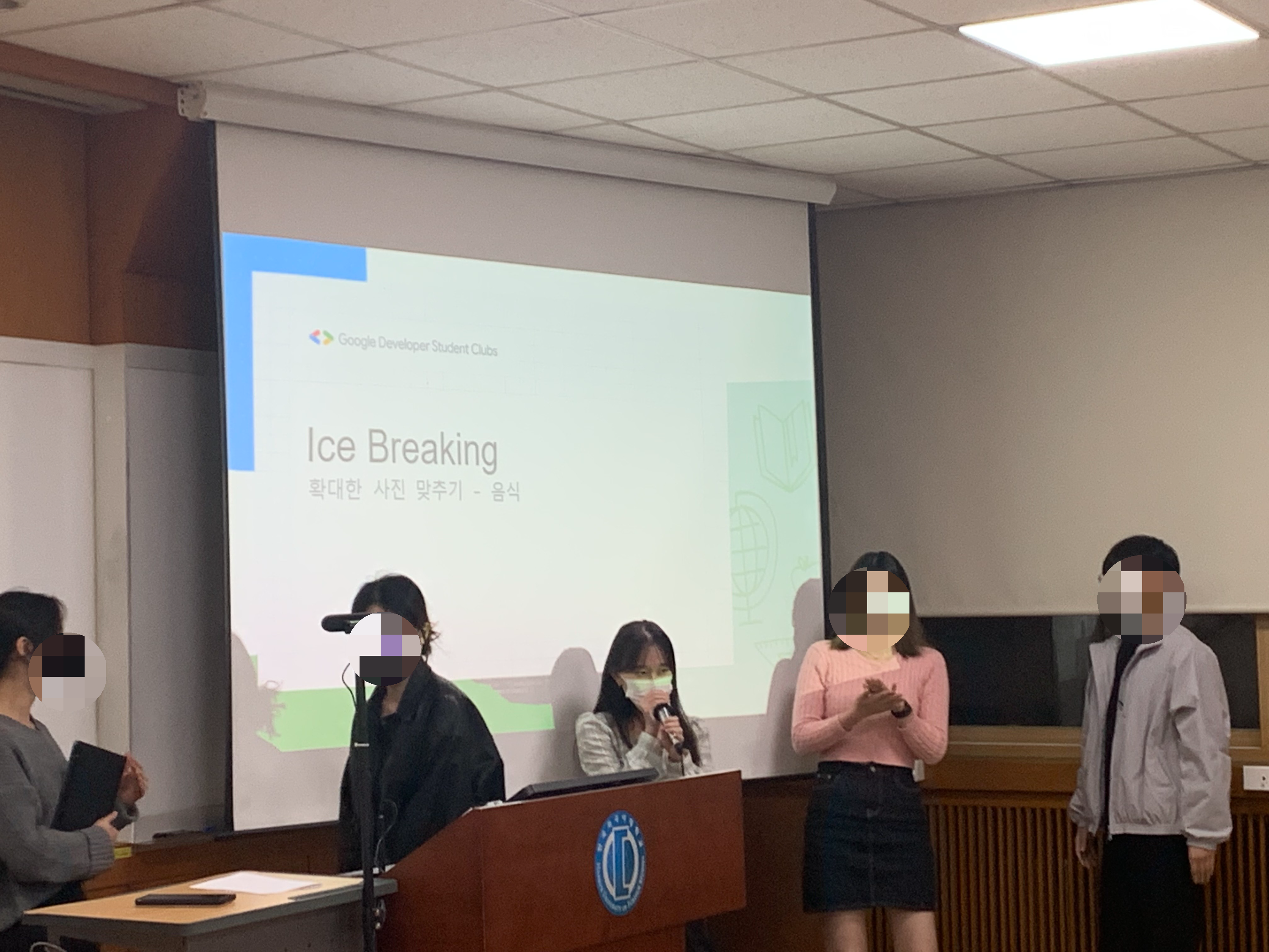 4기 때 처음 오프라인으로 다같이 모였을 때에 아이스브레이킹을 진행하고, 앞에 나가 Core Member 소개를 드렸던 사진이네요!
