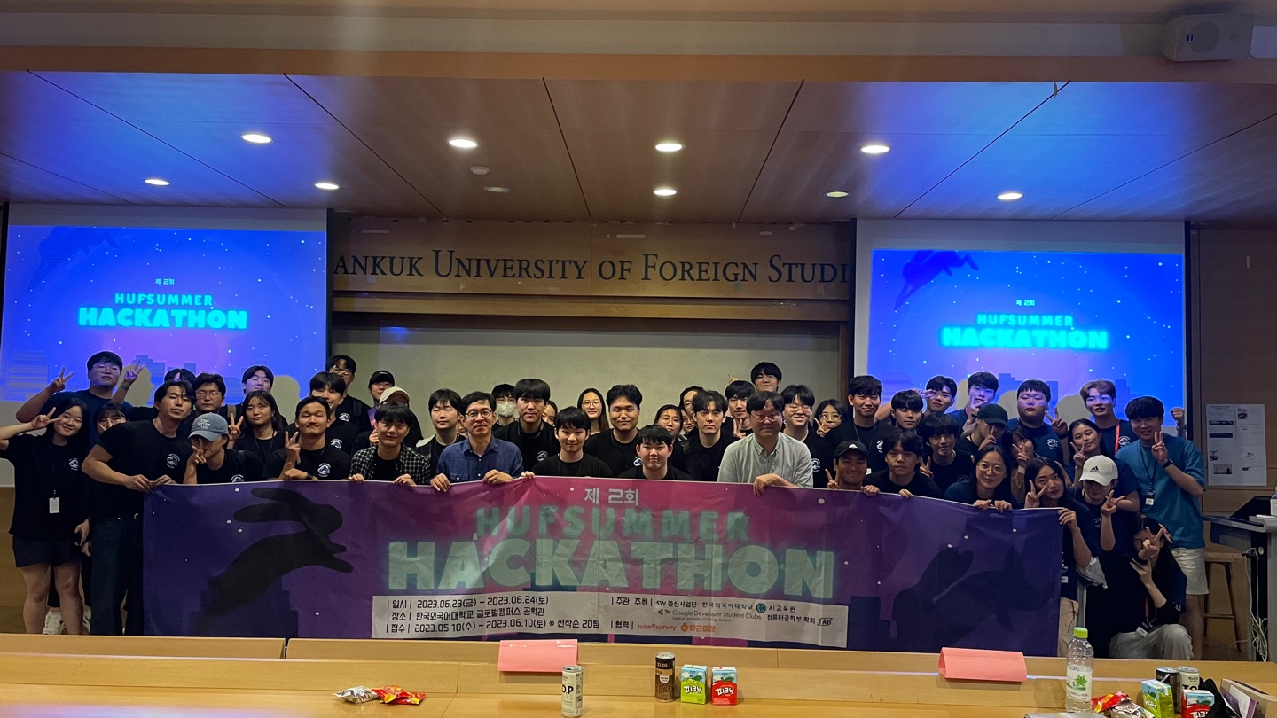 교내에서 열리는 가장 크고 유일한 해커톤 행사인데요, 말 그대로 더운 여름에 열려서 HUFSummer 해커톤이라는 이름을 갖게 되었어요 :)