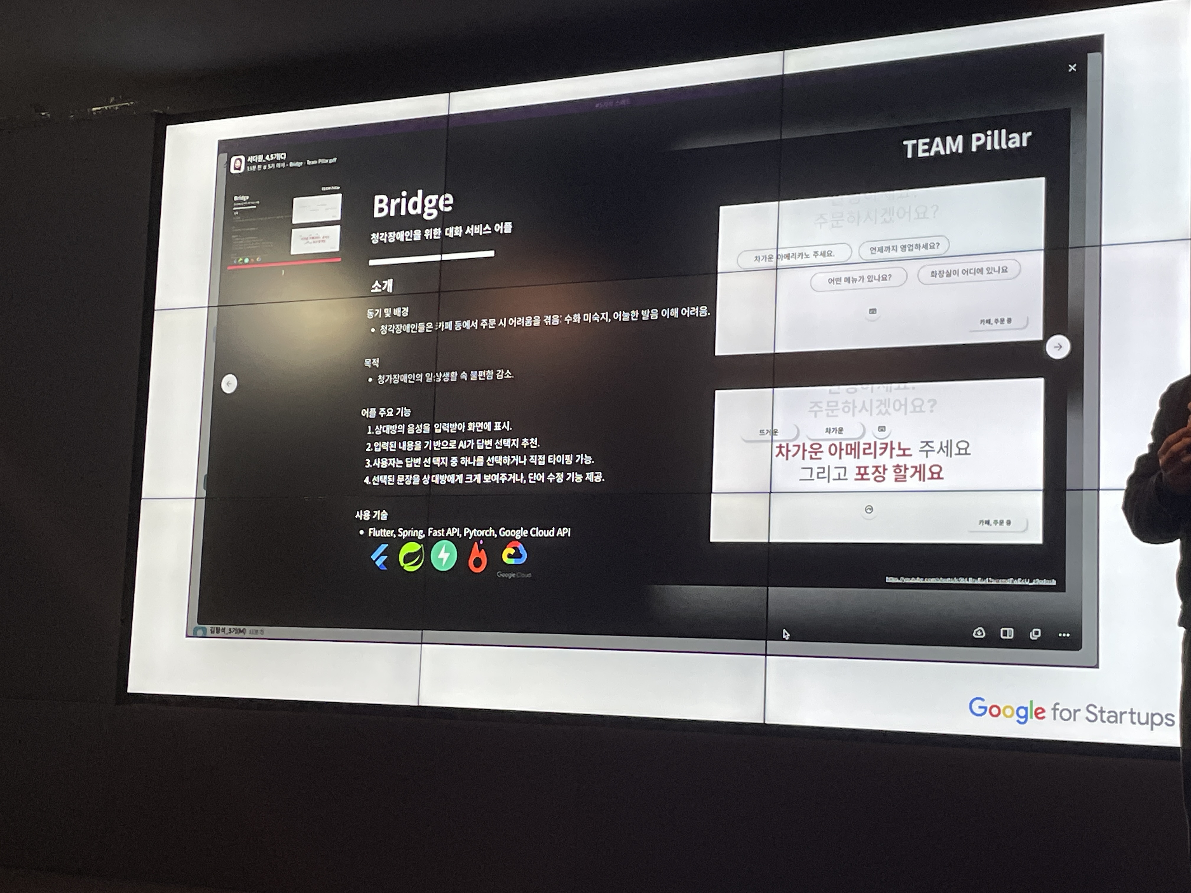 구글 스타트업 캠퍼스에 모여서 본격적인 솔루션 챌린지 개발전 팀별로 아이디어를 발표하는 시간을 가졌어요.