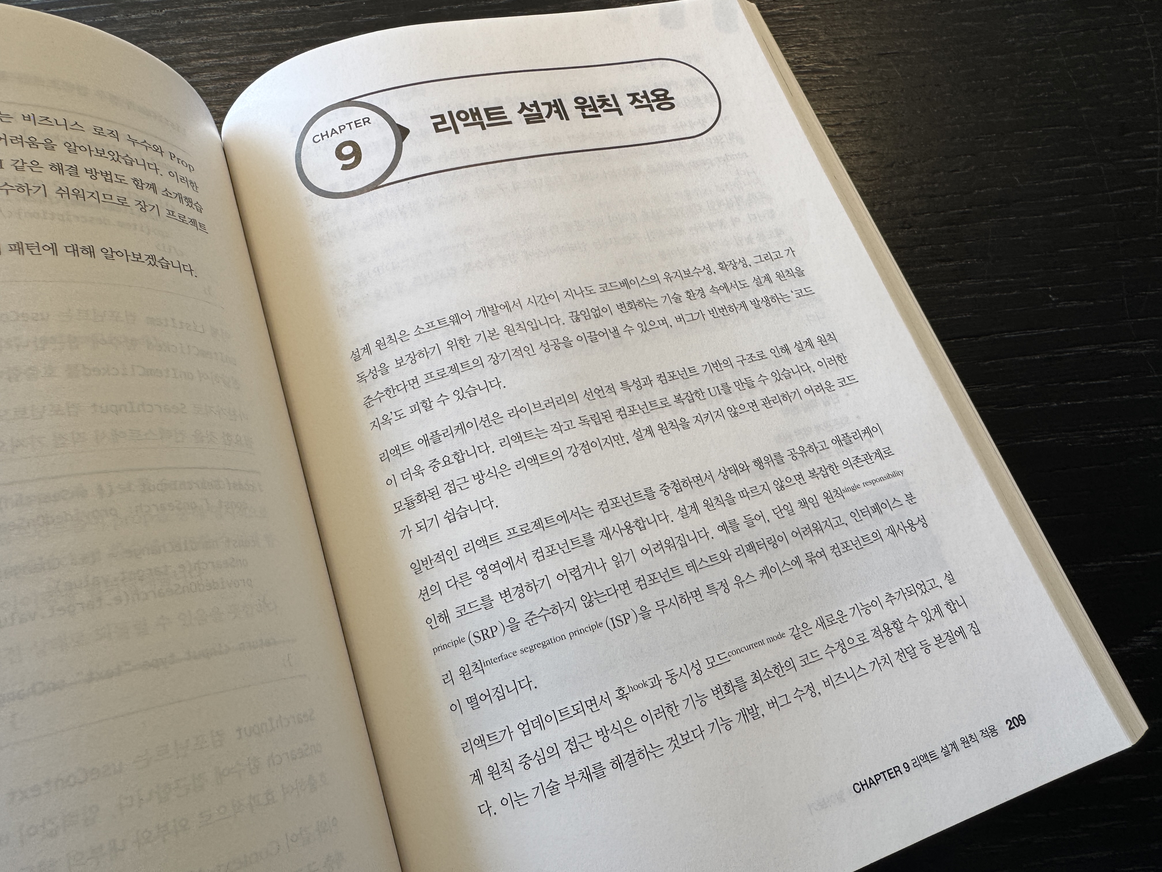 이 책의 가장 큰 특징은 리액트의 기본 사용법을 넘어 소프트웨어 설계 원칙을 깊이 있게 탐구한다는 점입니다. 단일 책임 원칙, 의존관계 역전 원칙, 명령과 조회 책임 분리 원칙 등 객체지향 설계 원칙을 리액트에 적용하는 방법을 상세히 설명합니다. 또한 고차 컴포넌트, 헤드리스 컴포넌트 패턴 같은 고급 패턴도 다루고 있죠. 책은 크게 4부로 구성되어 있는데요. 1부에서는 리액트의 기본 개념을, 2부에서는 테스팅 기법을, 3부에서는 비즈니스 로직과 디자인 패턴을, 4부에서는 실무에서의 구현을 다룹니다. 이런 구성을 통해 독자들이 단계적으로 지식을 쌓아갈 수 있도록 한 것 같아요. 특히 테스트 주도 개발(TDD)과 리팩토링에 많은 내용을 다루고 있어서, 견고하고 신뢰할 수 있는 코드를 작성하는 방법을 배울 수 있습니다.