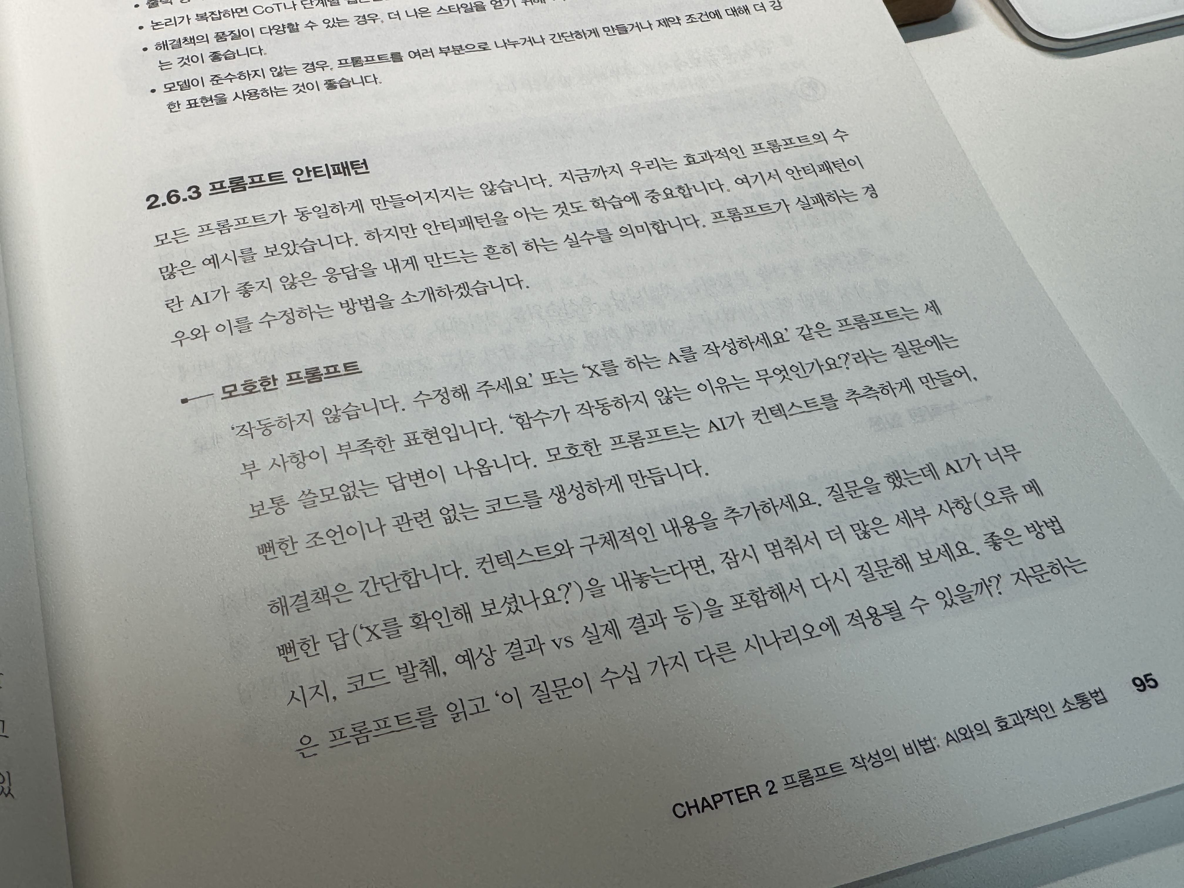 책을 읽으면서 가장 중요하게 느낀 건, 변화의 속도가 빨라서 정신을 못 차리겠지만 그렇다고 너무 두려워할 필요는 없다는 거였어요. 새로운 기술에 열린 마음으로 배워보려고 하는 게 가장 필요한 마인드라는 생각이 들었습니다. AI의 결과물을 쉽게 받아들이면 겉으로는 완성된 것처럼 보이지만 실제 환경에서는 쉽게 무너지는 '모래성 코드'가 만들어진다는 경고도 기억하려고합니다.