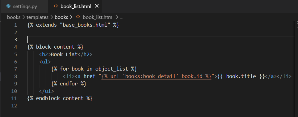 base_books.html 템플릿을 상속받아서 content 블록만 재정의했다