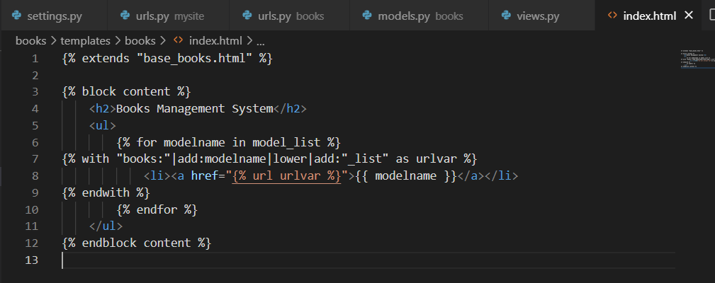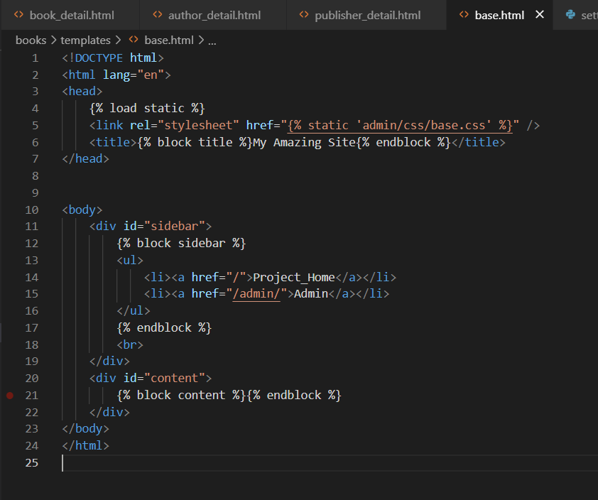 base_books.html 은 base.html 을 상속받아서 title 블록이랑 sidebar 블록만 재정의 하고 있고
