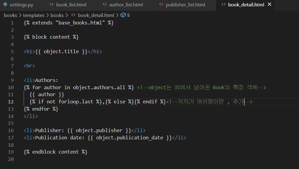 나머지 템플릿도 base_books.html 템플릿 상속받아 작성하자
