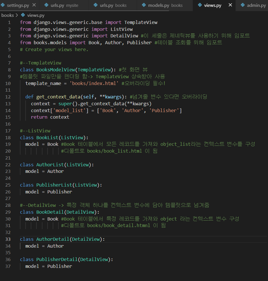 books라는 애플리케이션을 만들어 보자(주로 클래스형 뷰를 사용할것.)